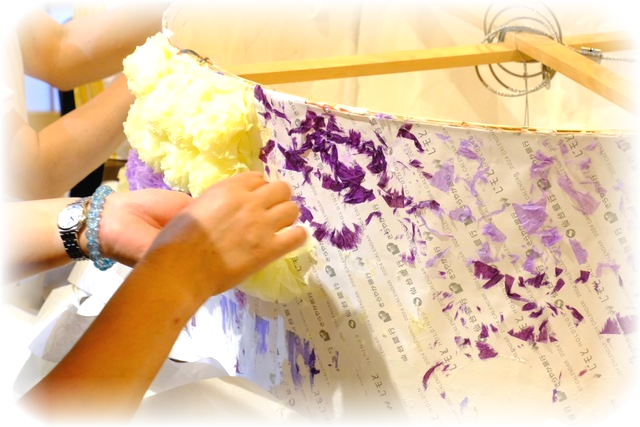 今年は5つの飾りのうち、1つをまるごとスタッフに作ってもらいました。左画像の手前の「朝顔」がその飾り。