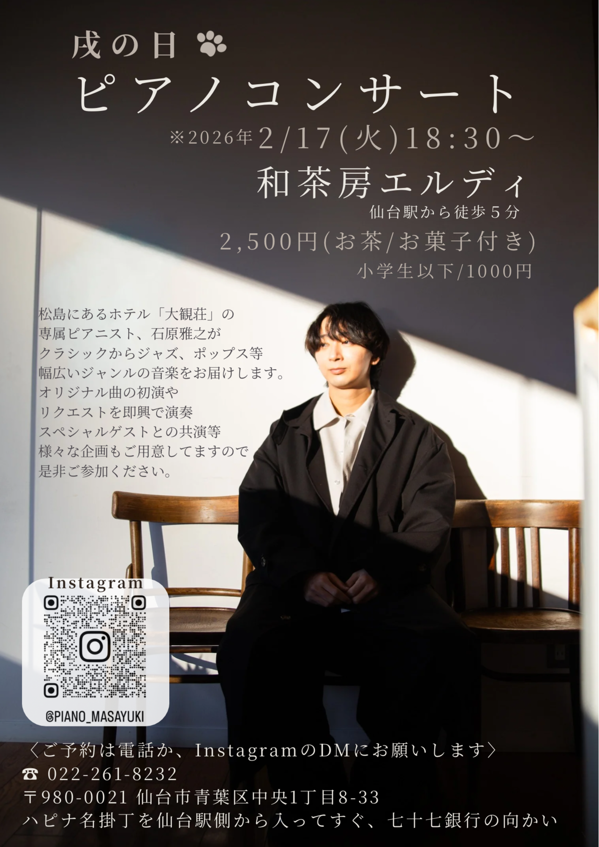 大正園2階 エルディでは、2025年も戌の日コンサートを行います。