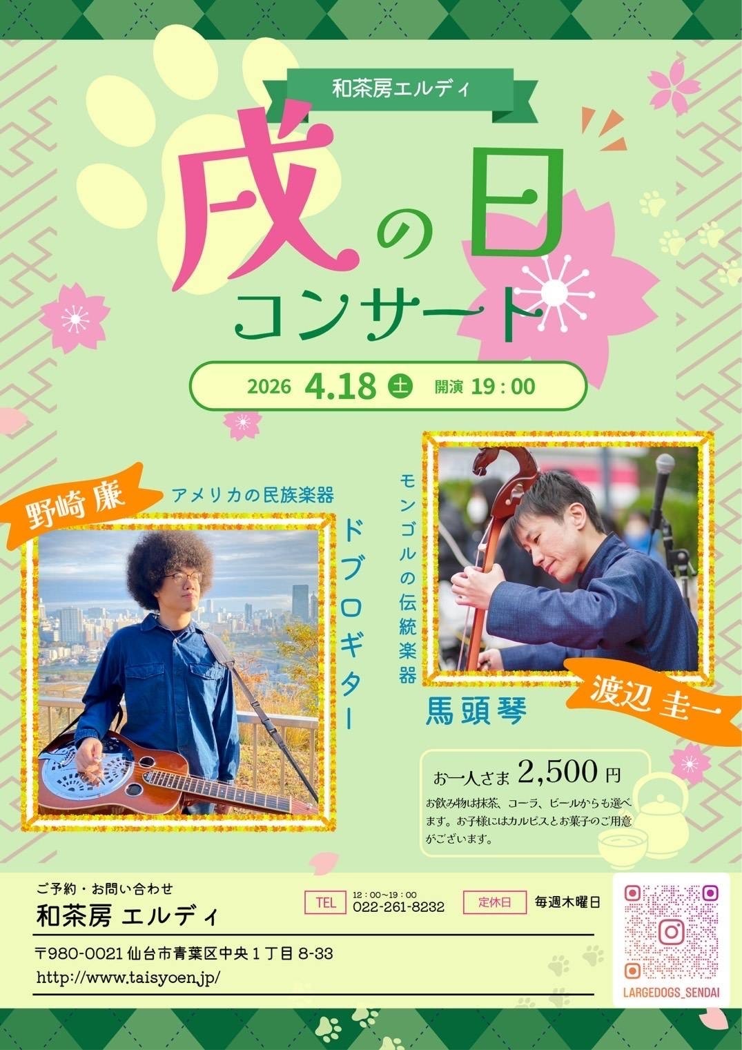 大正園2階 エルディでは、2026年も戌の日コンサートを行います。